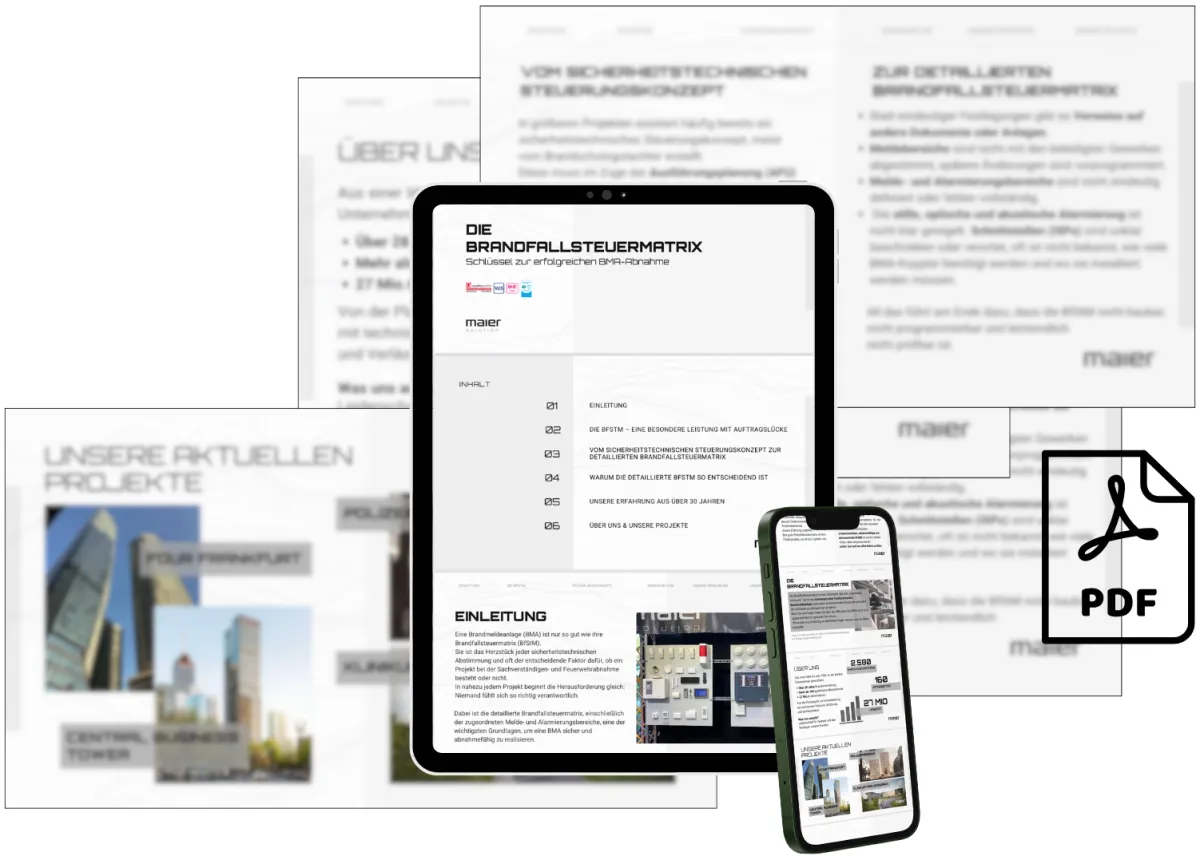 Sie erfahren, wie eine sauber definierte Brandfallsteuermatrix technische Klarheit schafft, Schnittstellen präzise abbildet und Planungsfehler frühzeitig verhindert.